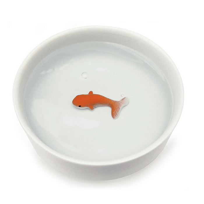 De goudviswaterbak ziet er op het eerste gezicht uit als een gewone drinkbak. In werkelijkheid zwemt er een goudvis in rond! De handgeschilderde keramische vis ziet er in ieder geval zo bedrieglijk echt uit dat je kat er zeker veel plezier aan zal beleven om hem te vangen. Het makkelijkste is natuurlijk om eerst het water weg te drinken. Dan worden de pootjes niet zo nat ;)