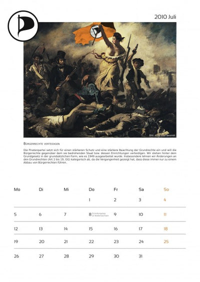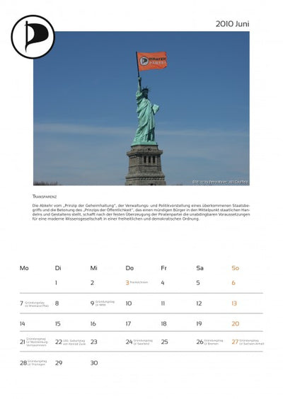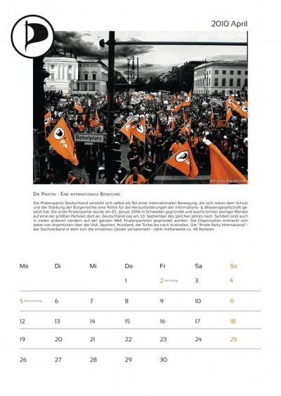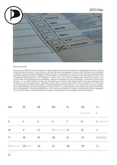 DIN A3 Kalender mit 13 farbigen Seiten aus dem Piraten Kalender 2010 Wettbewerb.