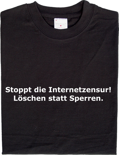 Dieses Shirt gab es bis zum 5.7.2009 kostenlos, um Euch bei der Demonstration gegen die neuen Gesetze zu unterstützen. Die Aktion ist jetzt aber leider beendet.