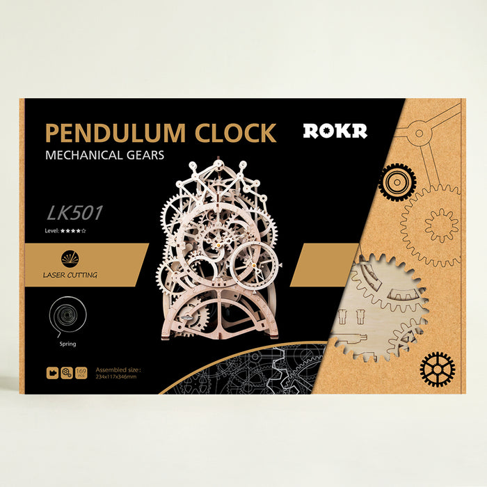 The wooden clockwork kit lets you immerse yourself in exactly this fascinating world of mechanics and build a fully functional clock with a complex mechanical movement! The set contains pre-cut wooden parts that you can use to build a clock with a pendulum and a winding movement that then runs for around 3 to 4 hours.