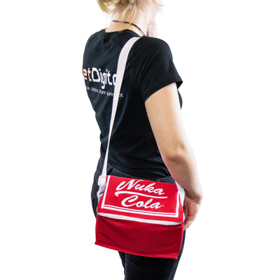 Forget weapons, armor, and the like! In the post-apocalyptic world of Fallout, you should be more concerned with finding enough food and making sure it remains somewhat edible. How? You don't live in a radiation-soaked wasteland? Even then, the Fallout Cooler Bag "Nuka Cola" is just right for you!