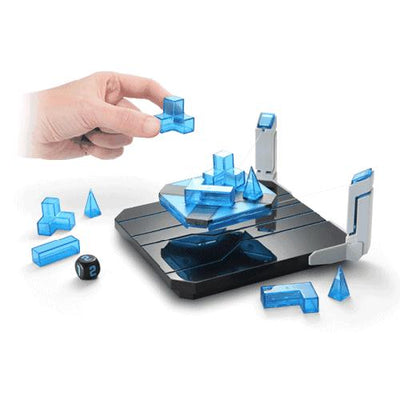 HoverKraft logically takes place on a floating platform. Thanks to our good old friend magnetism, the platform stays in the air - at first. The challenge is to create futuristic structures with differently shaped blocks. These blue blocks are essentially the three-dimensional brothers of Tetris pieces. The dice decide what you have to do: Either you have to add one or two new blocks, or remove one. The goal is to keep everything balanced. If the platform tips, it quickly crashes, and the round is over.