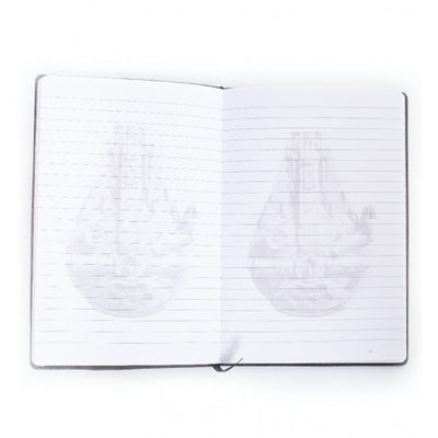 Das ist ganz schön viel, um es im Kopf zu behalten, als schreib es dir besser auf! Um dabei nicht so leicht erwischt zu werden, solltest du das natürlich möglichst nicht in digitaler Form machen. Mit dem Star Wars Millennium Falke Notizbuch, kannst du dir alle wichtigen Informationen auf Papier notieren. Auf den 100 linierten Seiten ist dafür genug Platz, während es mit seinem A5-Format trotzdem eine handliche Größe hat. Da du davon ausgehen musst, es jederzeit am Körper zu tragen, falls dein Schiff einmal durchsucht wird, ist das weiche Softcover ebenfalls vorteilhaft. Aber das Beste ist doch, dass dein treuer Falke, das schnellste Schiff in der gesamten Galaxie, darauf abgebildet ist. So bleibt er dir in Erinnerung, selbst wenn du ihn irgendwann wieder beim Glücksspiel verlieren solltest.