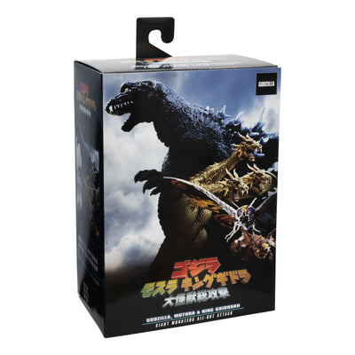 Lors de la Figurine d'action Godzilla Classic 2001 est une figurine articulée inspirée de Godzilla dans le film "Godzilla, Mothra & King Ghidoran". Dans ce crossover de méga-monstres trash, Godzilla affronte pas moins de 3 autres créatures géantes japonaises (Baragon n'est pas mentionné dans le titre, mais il joue un rôle non négligeable). Et bien sûr, il utilise ici son arme la plus puissante : le rayon de chaleur atomique. Le bleu vif du rayon de chaleur apparaît également autour de la bouche et des plaques dorsales de Godzilla.