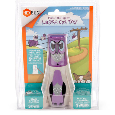 Ce pigeon à l'air perplexe est un artiste talentueux, même s'il n'en a pas l'air - et ton chat est son public bienvenu ! La tête de Pester peut tourner à 360° (les vrais pigeons peuvent en prendre de la graine !), et un laser inoffensif pour les animaux domestiques sort de son bec. Si tu le poses sur le sol, le point laser atterrit sur le sol et se déplace, ce qui éveille l'instinct de chasse de ton chat. Alimenté par 3 piles AAA (incluses), Pester peut occuper ton tigre de salon pendant des heures ! Tu peux même choisir l'une des trois vitesses différentes auxquelles la cible se déplace.