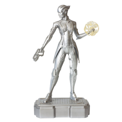 Deswegen ist ihr diese silberne Mass Effect Statue Liara gewidmet. Sie zeigt die Asari in Kampfpose sowohl mit ihrer Waffe, als auch im Begriff eine Energieattacke auf ihre Feinde zu schleudern. Dabei ist die Statue so detailliert gearbeitet, dass sie beinahe so lebendig wirkt, wie sonst nur auf deinem Bildschirm. Dank des stabilen Standfußes bewahrt sie überall Haltung, egal ob auf deinem Sammlerregal oder dem Schreibtisch.