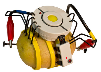 Si tu as manqué les expositions des enfants à la foire scientifique des Apperture Science Labs, nous avons quelque chose pour toi ici. Tu peux presque imiter le projet de Chell, sauf que ta pomme de terre ne génère pas vraiment d'électricité, mais devient un PotatOS (grâce à des piles cachées). Ton propre PotatOS a l'air d'être alimenté par la pomme de terre, mais pour réaliser les effets lumineux et sonores, il a besoin d'un peu plus de puissance. Mais à la fin, tu te sentiras comme au bon vieux temps : GLaDOS t'insultera à nouveau et tu pourras la porter autour de toi ;)