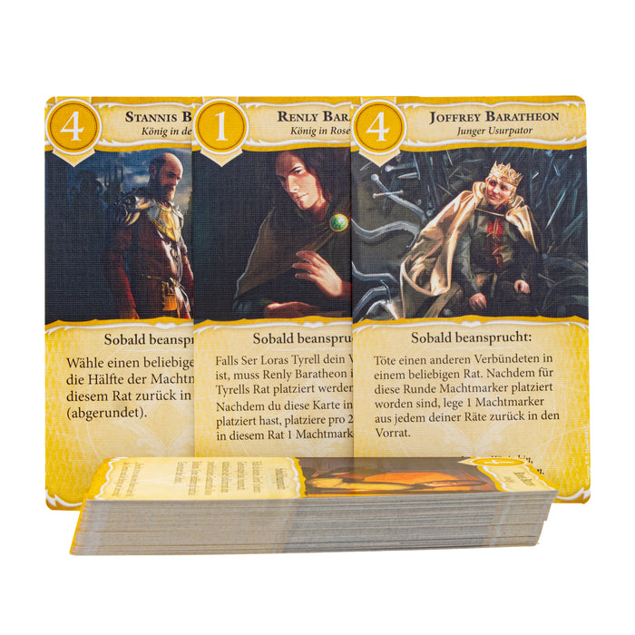 Pendant les tours de jeu, tu coopéreras avec d'autres joueurs et optimiseras la valeur de vos piles de cartes communes. En même temps, tu dois bien sûr t'efforcer de faire mieux que tes adversaires à la fin de la partie. C'est exactement comme dans la série de livres "A Song of Ice and Fire".