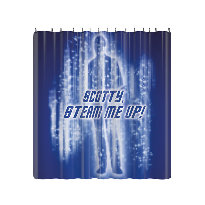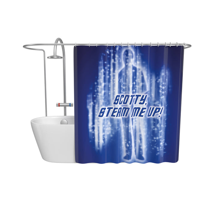 C'est pourquoi nous avons pensé qu'il serait parfait sur le rideau de douche Steam me up, Scotty. Malheureusement, même après avoir mis ce rideau - ce qui n'est pas de la science-fiction grâce aux 12 anneaux fournis - ta douche ne peut pas vraiment te transporter sur des planètes étrangères. Mais c'est peut-être mieux ainsi. Cependant, ta douche à la maison n'est pas si différente du téléporteur. Après moins de dix minutes sous l'eau chaude (ou glacée), même les pires jours, tu as l'impression que tes atomes se sont dissous et recomposés. ;)