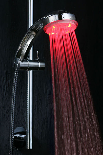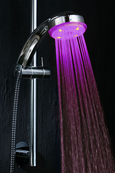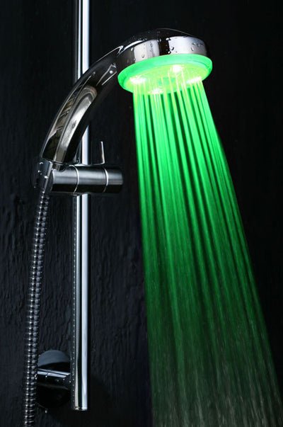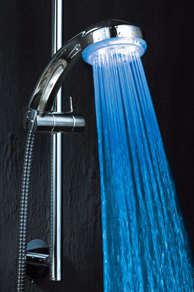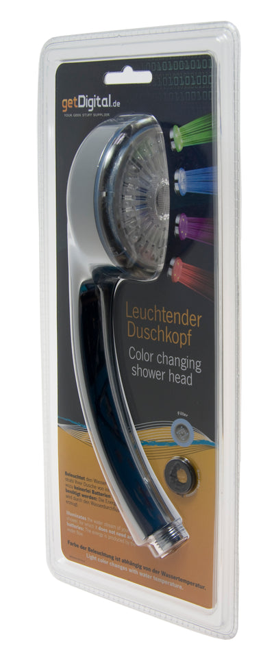 Con il Luce del rubinetto puoi già fare in modo che il tuo rubinetto si illumini in modo diverso a seconda della temperatura, ma puoi ottenere un effetto ancora più impressionante con questo soffione, che utilizza dei LED integrati per illuminare il getto d'acqua della tua doccia. L'illuminazione è realizzata in modo tale che la luce si propaghi nel getto d'acqua come un cavo a fibre ottiche, creando un effetto affascinante.
