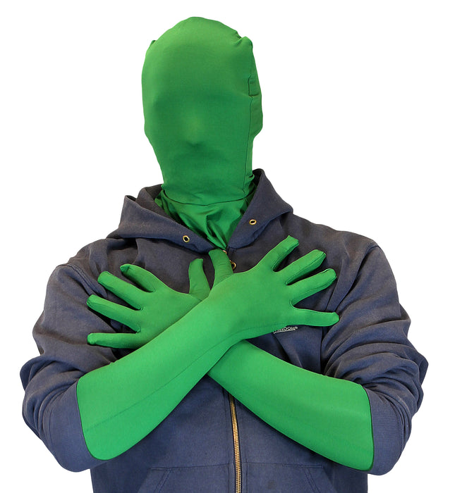 La tuta verde chic a tre pezzi che ti proponiamo ha un enorme vantaggio: è una tuta a tre pezzi e non una tuta (l'abbiamo già detto?)! Questo significa che puoi indossare i tuoi vestiti normali e coprire il resto - di solito le mani e la testa - con il tessuto verde. I guanti sono lunghi circa 51 cm e arrivano fino al gomito. Anche il copricapo non si ferma al mento, ma cade quasi sopra la spalla in modo da coprire anche una normale scollatura.