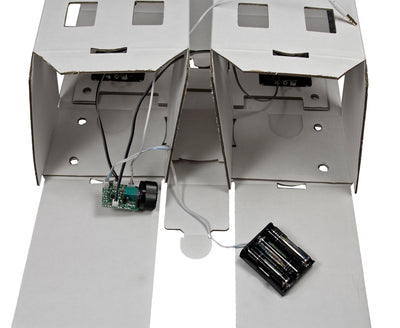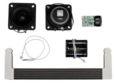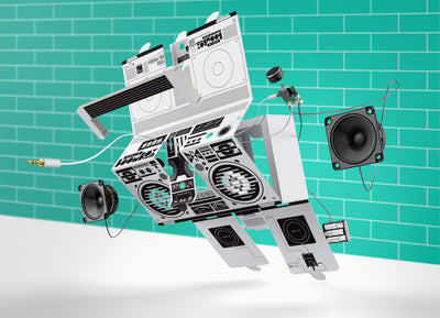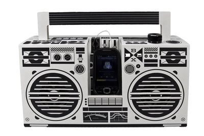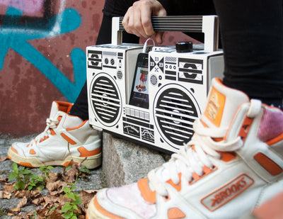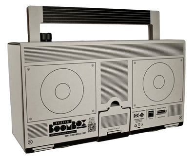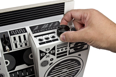 Im Set mitgeliefert ist natürlich eine Anleitung, so dass Du beim Zusammenfügen der Pappteile sowie dem Einbau der 2x5 Watt Klasse-D Lautsprecher nicht ganz im Dunkeln stehst. Aber keine Sorge, Klebe oder andere Werkzeuge sind nicht notwendig und der Aufbau ist innerhalb kurzer Zeit erledigt. Wer schwarz und weiß nicht mag, kann die Berlin Boombox natürlich auch noch selbst bemalen oder mit Aufklebern verschönern.