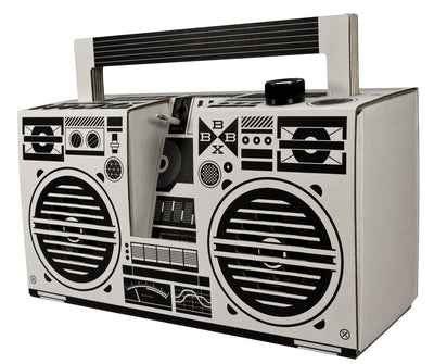 Das Gehäuse des Retro-Ghettoblasters ist aus Recyclingmaterialien hergestellt, schont die Umwelt und lässt damit die Herzen aller Nachhaltigkeitsliebhaber höher schlagen. Übrigens, Möbel aus Pappkarton gab es schon vor zweihundert Jahren. Wenn das nicht retro ist, wissen wir auch nicht weiter... ;)