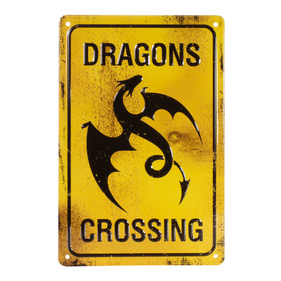 Tsja, dat had voorkomen kunnen worden als je het "Dragons Crossing"-blikbord beter had bekeken. Dit stabiele en geperste metalen bord waarschuwt duidelijk dat gevleugelde schubbenwezens in de buurt hun streken uithalen. Door de vier gaten in de hoeken of met dubbelzijdig plakband kan het ook perfect met spijkers of schroeven aan muren, bomen, herbergdeuren of bruggen worden bevestigd. Maar onthoud altijd: Zelfs het mooiste bord is nutteloos als niemand het leest. ;)