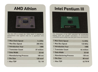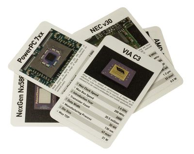 CPU Wars ist damit die neueste Entwicklung auf dem Kartenspielmarkt. Diese Version ist allerdings von Geeks, für Geeks entwickelt worden und dreht sich deshalb mal nicht um Autos, sondern um die Herzstücke elektronischer Geräte - CPUs (Hauptprozessoren).