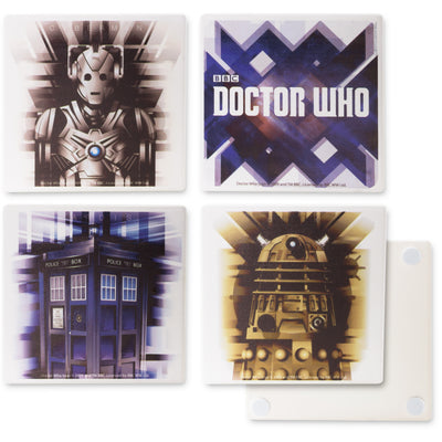 Om deze reden gaat de Time Lord ook bijzonder zorgvuldig met de TARDIS om. Drankjes mag men bijvoorbeeld alleen consumeren als men de "Doctor Who"-keramische onderzetters gebruikt om vlekken op de console van de tijdmachine te voorkomen. De motieven van de vier onderzetters tonen een Dalek, een Cyberman, het logo van de serie en natuurlijk de TARDIS. Dus pak een kop thee, je excentriekste outfit en ga op avontuur met de Doctor!