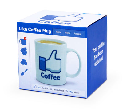 Hier is nog iets dat de moeite waard is om te liken: De Facebook koffiemok! Je houdt toch van koffie, of niet? Nou dan. Dan 'duim omhoog' voor je favoriete cafeïnehoudende warme drank. Uiteindelijk moeten ook al je collega's weten wat je graag drinkt, dat is belangrijk, dat hoort bij het juiste sociale gedrag. Jullie zouden dan een groep kunnen vormen en elkaar uitnodigingen voor koffiedrinken op het prikbord kunnen posten en nieuwe vrienden uitnodigen die ook liever koffie slurpend in de keuken staan in plaats van te werken. Dat zou toch wat zijn :)