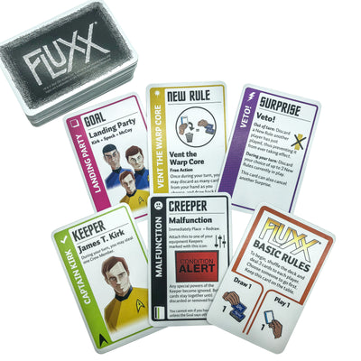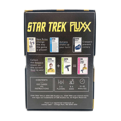 Het Fluxx Kaartspel - Star Trek Edition (EN) combineert dit gestoorde principe met de intergalactische personages, voorwerpen en situaties uit de films en tv-afleveringen van de legendarische SciFi-serie Star Trek. Wat zou Mr. Spock van deze hele regelchaos zeggen? ;)