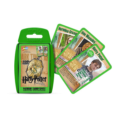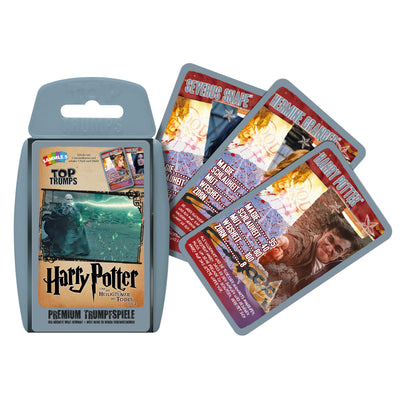 Het Harry Potter Supertrumpf-Kaartspel beantwoordt precies deze vraag. Kan Ron Wemel tippen aan de ongelooflijk intelligente Hermelien Griffel? Of zou Remus Lupos een kans maken tegen Perkamentus? Gebaseerd op het klassieke principe van het troefkaartspel kun je nu je favorieten tegen elkaar laten strijden. Vergeleken worden magie, sluwheid, moed, wijsheid en woede.