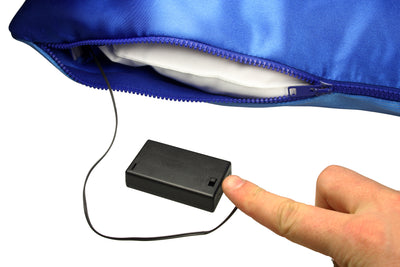 Die nicht-leuchtende Seite des Kissens ist aus edlem Satin gefertigt. Im Kisseninneren verborgen befindet sich ein kleines Batteriefach, das mit nur drei AAA-Batterien ca. 30 Stunden satte und bezaubernde Leuchtkraft schafft.