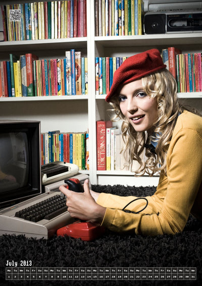 Es geht bei diesem Kalender nicht um die Pin Up Girls - auch wenn das auf den ersten Blick so aussehen mag, die Mädchen sind nur Deko. Wie unschwer zu erkennen ist, sind die ja alle noch angezogen - Die Computer hingegen sind splitterfasernackt! Der Name Nerd Dreams Kalender ist also Programm. Und was für eines! Da gibt es z.B. einen klassisch kurvenlosen Game Boy, einen Oldie but Goldie Sinclair ZX, einen rassigen Mac Se oder auch einen begehrenswerten Atari ST. Pure Erotik für das geekige Auge! Wer kann schon widerstehen, wenn sich ein elektrisierender Commodore C64 lasziv auf einem Flokati räkelt? Da brennt die Luft!