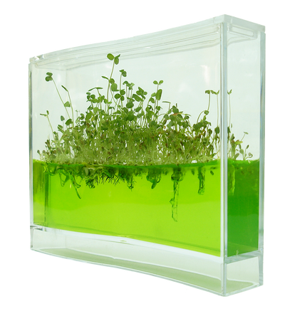 Het Plantarium bestaat uit een plexiglazen behuizing die gevuld is met een speciale gel. Deze gel levert alle voedingsstoffen die een plant nodig heeft - zelfs water geven is niet meer nodig. Bovendien is de gel ook nog doorzichtig, zodat je de planten niet alleen boven de grond kunt observeren. De natuurlijke onderzoeksdrang van een geek kan dus moeiteloos bevredigd worden, want je kunt nu de groei van de wortels van de planten observeren.
