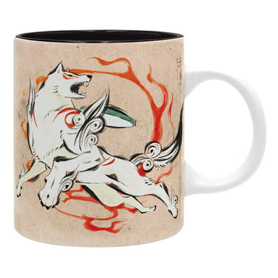 De Okami beker „Amaterasu“ beeldt deze bijzondere grafische stijl natuurlijk gedetailleerd af: Enerzijds in het officiële Okami-logo, anderzijds in de afbeelding van je speelkarakter, de legendarische zonnegodin Amaterasu, in de vorm van de legendarische witte wolf. Geef de demon Orochi geen kans en begin je dag met een koffie of thee, die je door de geest van Amaterasu laat inspireren!