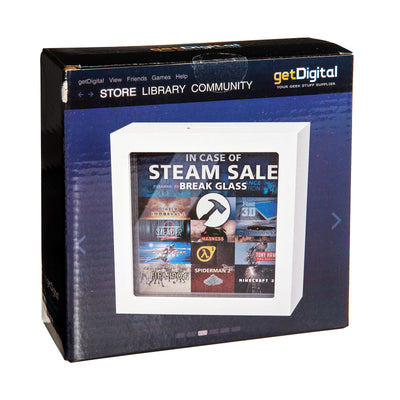 Damit Du für den nächsten Angriff der absoluten Sparpreise bestens gewappnet bist, gibt es die Spardose für den Steam Sale. Diese Spardose aus Holz erfüllt nämlich genau einen Zweck: Sie soll Dir beim Sparen helfen, damit Du Dir noch mehr Computerspiele holen kannst! Im Inneren der Spardose findest Du lauter Spiele-Cover, die von bekannten Spielereihen inspiriert wurden, z.B. FIFA 1904 oder Pong 3D. Es muss ja niemand wissen, dass Du bereits einen Pile of Shame in Deinem Account hast, der gefühlt höher als der Eiffelturm ist…