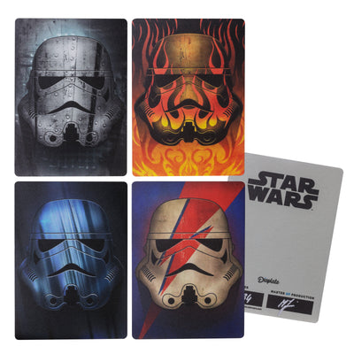Um noch ein paar mehr Rekruten anzulocken, hat das Imperium die strengen Vorgaben für Uniformfarben gelockert und erlaubt jetzt jedem Stormtrooper, seinen Helm individuell zu gestalten. Wie die Stormtrooper Mini-Metallposter zeigen, kommt dieser Kurswechsel gut an.