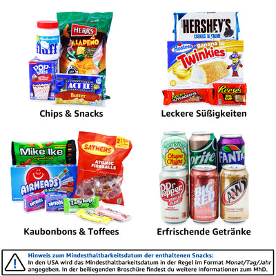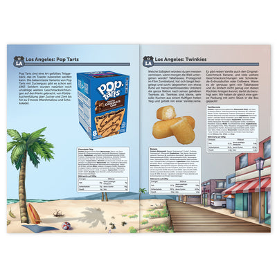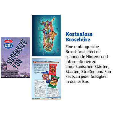 Mit der beiliegenden 40-seitigen Broschüre nehmen wir dich mit auf eine Reise durch das Land der unbegrenzten Süßigkeiten-Vielfalt. Darin erfährst du nicht nur alles über die Inhaltsstoffe und Hintergründe der einzelnen Snacks, sondern erhältst auch spannende Infos zu Pop-, Musik- und Sportkultur der USA. Erinnerst du dich beispielsweise an die Pop-Tart Szene in Pulp Fiction? Oder weißt du, was Twinkies mit dem Film Zombieland zu tun haben? Diese und weitere Süßigkeiten, die wir an dieser Stelle noch nicht verraten wollen, findest du in deiner Box. Lass dich von der Auswahl überraschen und von der schieren Menge nicht erschlagen! ;)