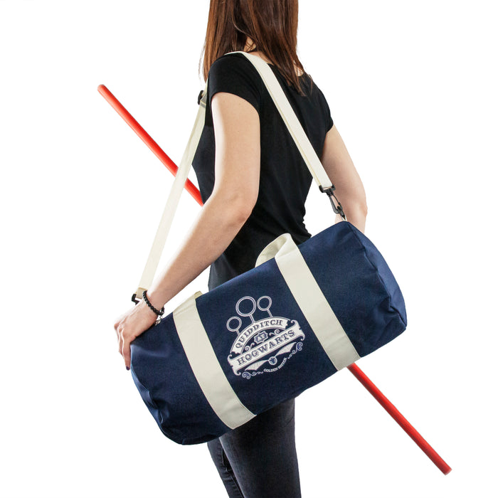 Je beseft: zonder de Harry Potter "Zwerkbal" sporttas is trainen of zelfs een wedstrijd tegen andere teams uitgesloten! De ruime tas, die versierd is met het"Zwerkbal op Zweinstein" logo, heeft een inhoud van ongeveer 30 liter en biedt ruimte voor je uitrusting en een isotone sportdrank uit Zweinsveld. Een ritssluiting, een verstelbare draagriem en twee handvatten maken het geheel af en laten niets te wensen over. Nou ja, behalve dan dat de bezem gewoon niet in de tas past. Maar Hermelien heeft vast de juiste magie in petto! :)