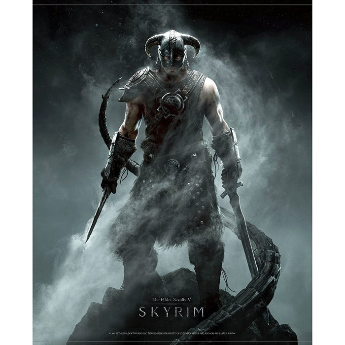 Die „The Elder Scrolls V: Skyrim“ Dragonborn Wall Scroll zeigt dich bereits in heldenhafter Siegerpose und in voller Rüstung mitsamt dem ikonischen Helm. Du kriegst bestimmt bereits Herzklopfen, wenn du dieses Bild siehst, und möchtest dich am liebsten direkt in den nächsten Kampf stürzen! Dann zeigt der Zauber bereits seine Wirkung, denn diese zwischen zwei Metallstangen gespannte Leinwand ist ein lange verschollener Teil der Elder Scrolls, der den Dovahkiin zu seinen Heldentaten ermutigen soll. Probiere aus, welche Fähigkeiten er dir und der Seele des Gamers, die du in dir trägst, verleiht!